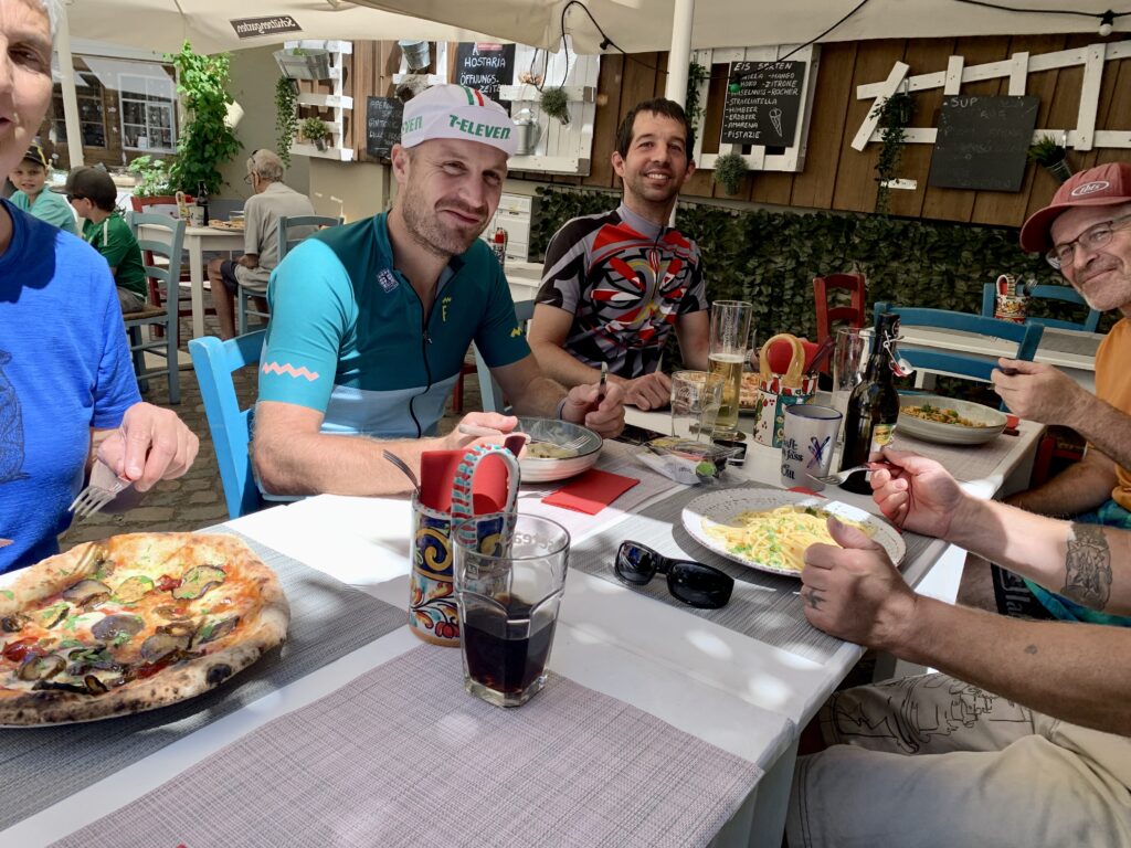 Wer miteinander auf Tour ist, muss sich verstehen und wissen wie der andere tickt. Darum sind nicht nur unsere gemeinsamen Vitaltrainings und Spinnings wichtig, sondern besonders auch die Fahrradausflüge. So lernen wir einander näher kennen und besser verstehen und bekommen ein Gespür dafür, wie sich die Einzelne im Strassenverkehr verhält. Unser jüngster Ausflug hat uns von Roggwil nach Wittenbach und Rorschach und Arbon gebracht, extra nicht auf den schnellsten und direktesten Routen, sondern über unterschiedliche Pfade auf und ab.