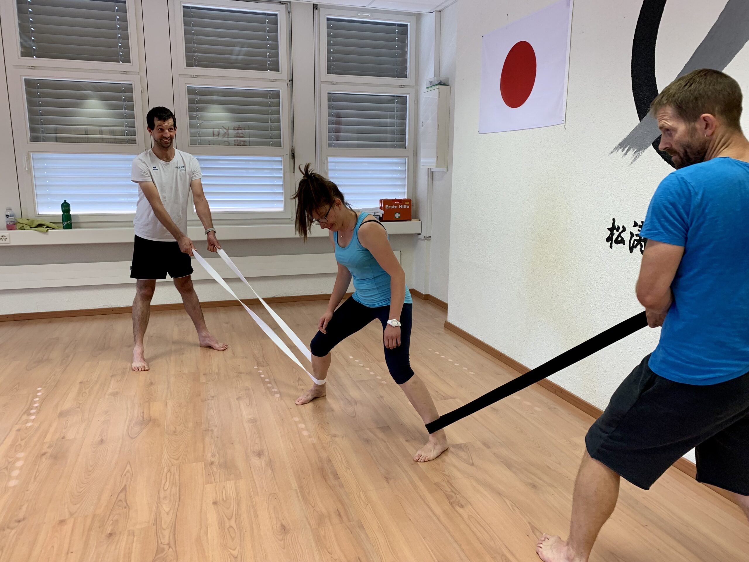 Wenn man sich richtig hinstellt und sich ausmalt, man sei fest mit der Erde verwurzelt, steht man stabil wie ein Baum – selbst dann, wenn starke Kolleginnen und Kollegen an einem ziehen.
