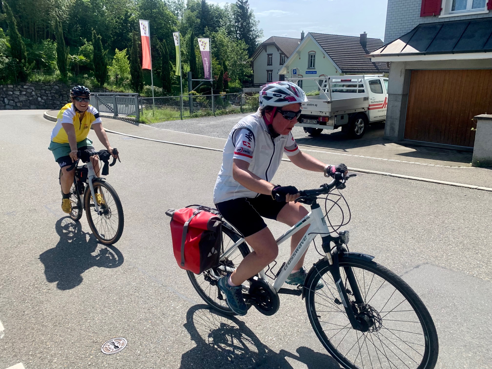 Eine weitere gemeinsame Ausfahrt dient uns bei der Vorbereitung auf die grosse Tour. Rorschacherberg, Fünfländerblick, Heiden, St.Anton, Trogen, Speicher, St.Gallen: Wir sind neun Stunden unterwegs mit dem Fahrrad und legen 65 Kilometer und 1280 Höhenmeter zurück. Dazu kommt die individuelle Anreise nach Roggwil-Mammertsberg, wo wir uns jeweils für unsere Ausfahrten treffen. Das ist der Stoff für eine realistische Generalprobe: Dieses Tagestour ist ein Exempel dafür, was uns am 31. August 2024 fünf Tage hintereinander erwartet.
