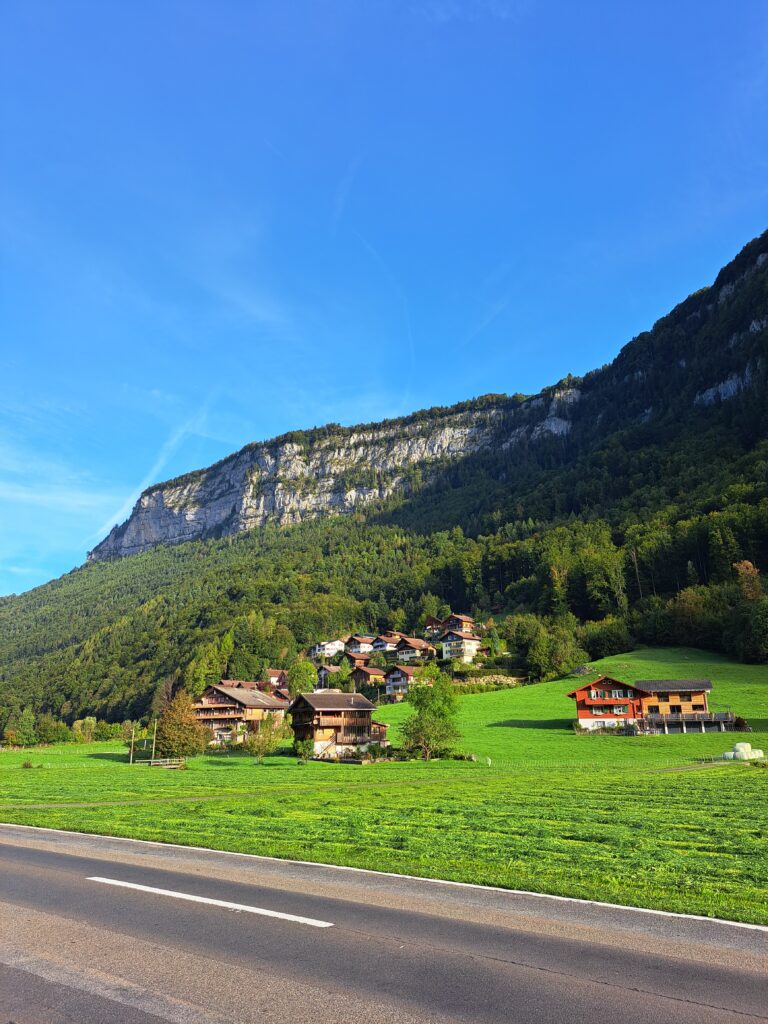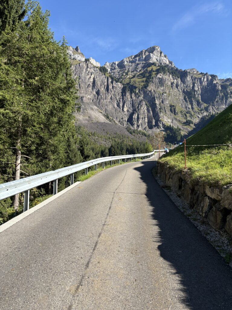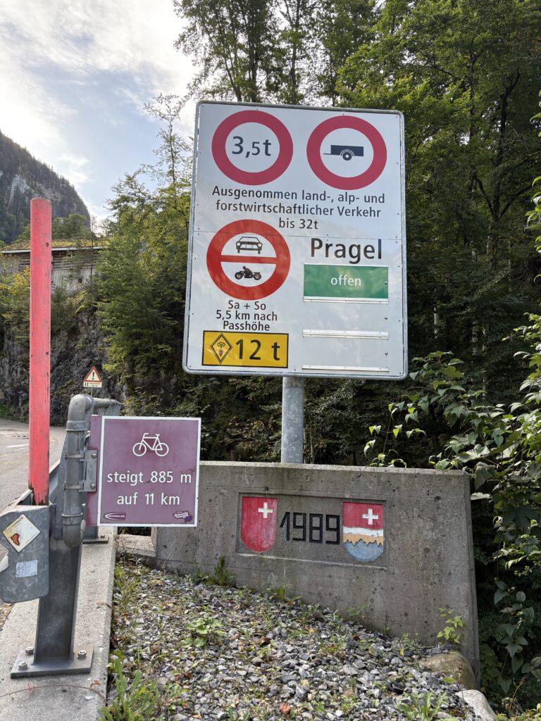 Leise Anspannung liegt in der Luft. Die heutige Etappe wird anstrengend, das ist allen klar. Gleichzeitig freuen wir uns auf die eindrückliche Route. Das Muotathal leuchtet in herbstlichen Farben, ist ruhig und irgendwie besonders. Fast wie aus dem Bilderbuch. Dann kommt der Pragelpass. Anstrengend und steil mit bis zu 15 Prozent Steigung. Wir brauchen starke Beine und einen klaren Kopf. Alle fahren in ihrem Tempo und arbeiten sich konzentriert nach oben.